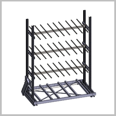Frendixin siirtohyllyt koostuvat vaunuista, pylväselementeistä ja vaakatasoista. Renkaat säilytetään vaakatasossa.